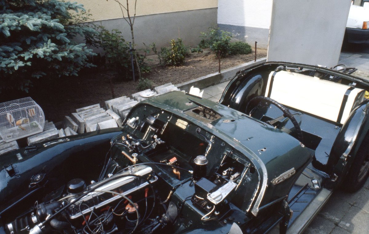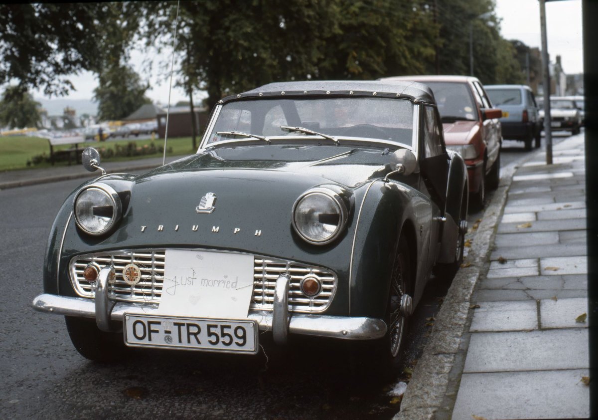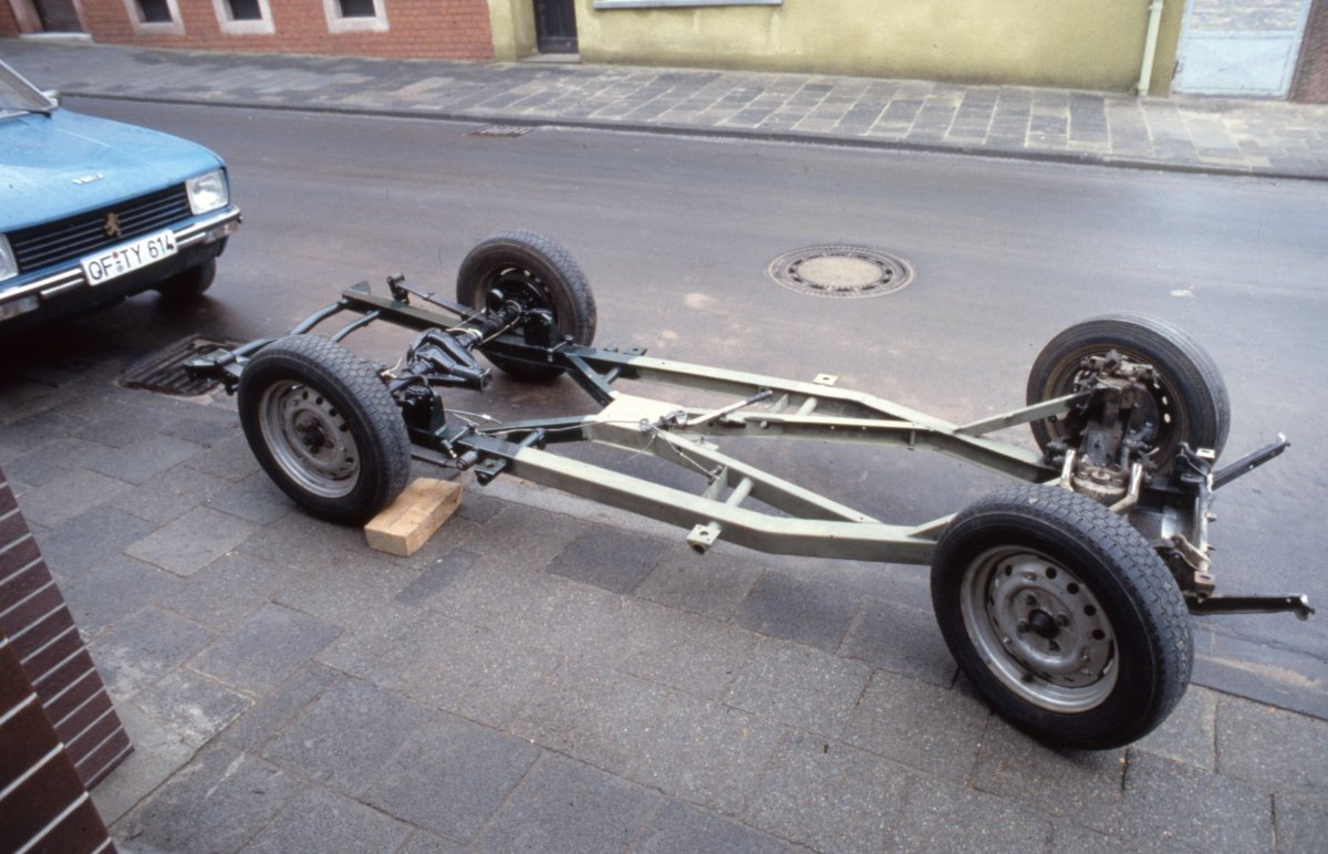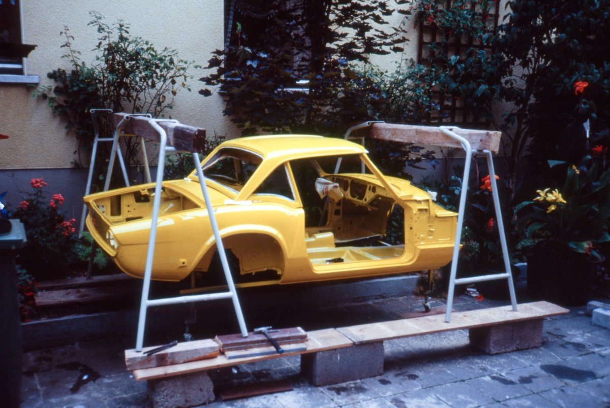 Speedy Posted December 26, 2024 Author Report Posted December 26, 2024 I had never done any bodywork before, so I left it to the "professionals". I didn't realize what that meant until 40 years later. The outer sills were replaced and the front apron repaired on the body. To my horror, I saw in the old pictures that there is still an ugly piece of metal under the grille (it came from America). The two front fenders were so corroded at the bottom that new sheets of metal had to be made and welded in. So the Triumph went to the painter. That was right after the restoration in 1986 with new wire wheels and still with white wall tires. Quote