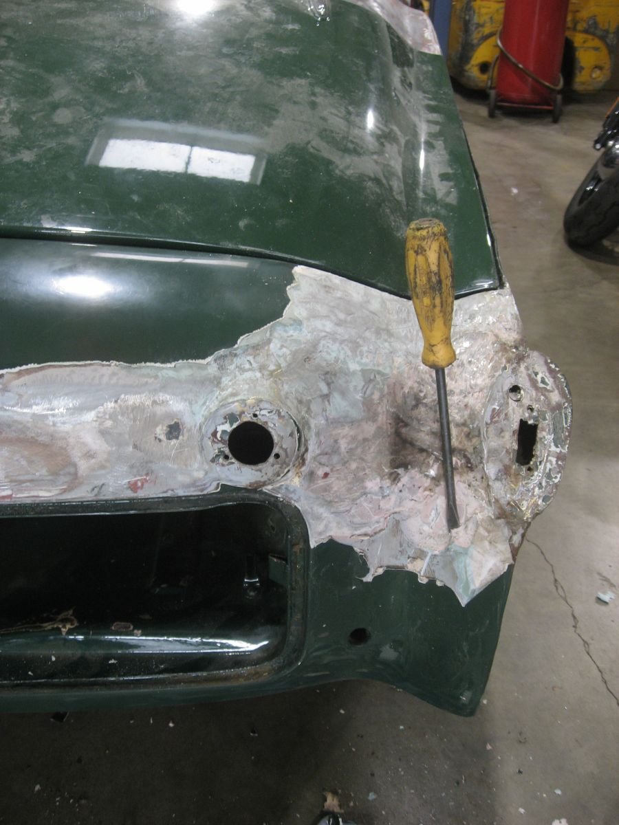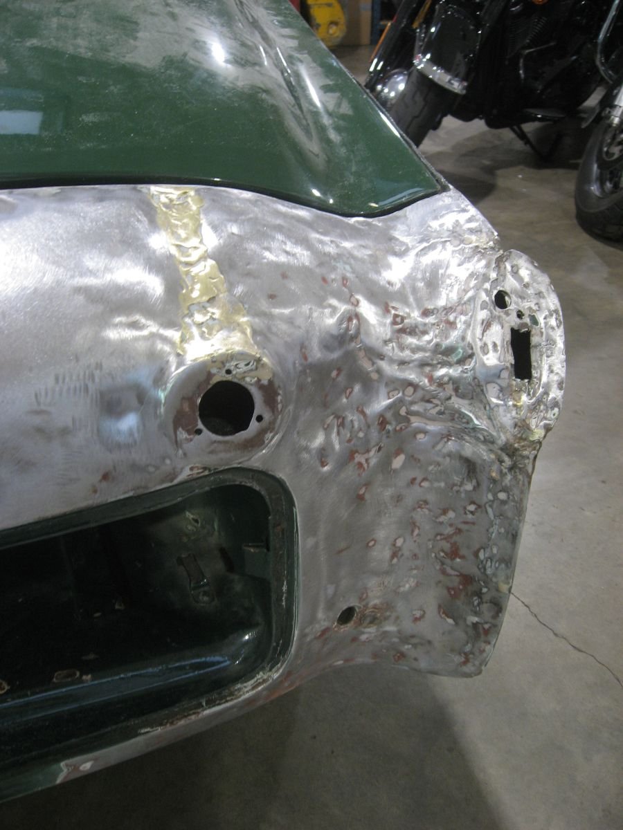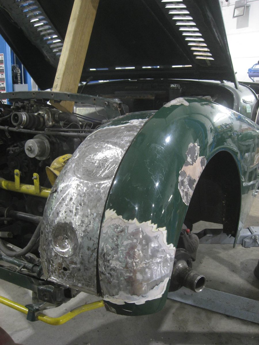 Speedy Posted December 29, 2024 Author Report Posted December 29, 2024 (edited) Such an accident is of course always very annoying, but the first inspecition at least did not reveal a catastrophe. It remained just a sheet metal damage, here is the first line-up: • Front Apron ruined and not salvageable • The grille also scrap • Headlight broken (unfortunately the good Lucas - no longer available) • Lamp rim broken • TR3 emblem bent • Fender dented but salvageable • Inner fender ditto • Oil cooler broken • Water radiator bent and leaking • Kenlowe fan broken • Hella fog light broken The expert prepared a damage report = economic total loss!!! That surprised me and even more so the amount of damage determined: estimated repair costs around 32,000€. For us, however, the question of not repairing the TR never arose, especially since the frame was not damaged. Since our TR has now become a generational car and son Colin has been tinkering with it for years - and drives it himself - the project is being carried out by both of us, especially because he has an excellent background and network. We want to build the car the way we have been wanting it for a long time. We were able to take our time with the planning, especially since not much has happened in terms of insurance. The lawsuit is ongoing. The most important part for reconstruction was already purchased one day after the accident. Colin was able to buy a used original front apron in very good condition for little money in the classifieds. Unfortunately, we only realised months later that this was not so good. We had the radiator refurbished in a specialist workshop, and a high-performance mesh was fitted. The bonnet had hardly any damage, but we wanted always Louvers which are embossed in a specialized company. The TR is now in the workshop (it's shortly before Christmas 2022) and the body fitter is starting the work. As the whole bodywork is being checked or reworked, let's take a look at the rear. It looks OK so far. We thought the same about the scuttle panel. A few small cracks had formed in the paint over the decades and these now had to be addressed. We noticed that quite a lot of filler had been applied in various places. That was from the Americans. My painter, who painted the TR in 1986, didn't bother with it either (it has held up until now). After removing the paint and filler, this was what came to light: And not only on the right side it looked like this, but also on the left side. That looks better now. Edited January 6 by Speedy Quote