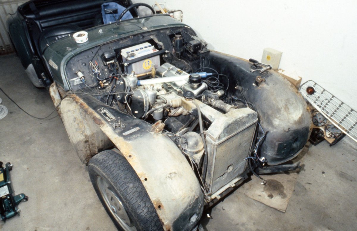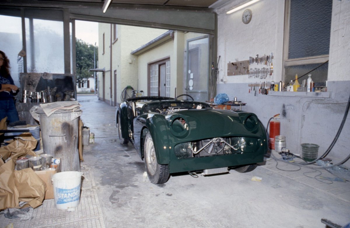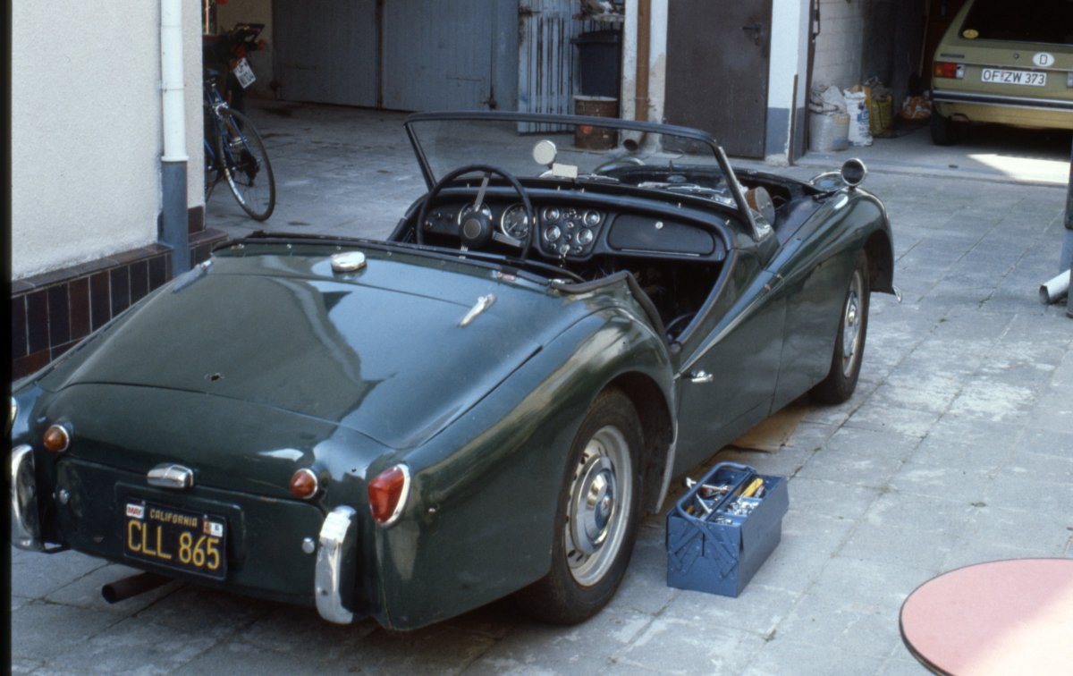 Speedy Posted December 25, 2024 Report Posted December 25, 2024 Hi, I´m Rainer from Germany and I've been reading here for years and I was also a member of the TR Register UK for a few years in the 90s. As I am reporting on the current restoration of my TR3A in another forum, I would like to do the same here. There are a lot of changes made during the restoration and it's probably not for purists, but it's certainly interesting for those with a technical interest. I have owned the TR3A for almost 40 years and would like to give you an outline of this period up to the present day. Unfortunately I don't know how long I can present this here, my restoration will take at least another six months, as the MT wants to restrict access to the forum for non-members. Hopefully the MT will change its mind. Let's get started. My wife Birgit and I were looking for a new "used" car in 1984. My wife's work colleague at the time had a lot to do with old cars, furniture and flea market items and suggested we look for a classic car. We really liked the idea and it soon became clear that it had to be an English Vehicle. After delving into the classic vehicle scene and the prices at the time, we chose a Triumph TR3. The search began. We drove all over Germany for half a year, even going to Milan in Italy to find our TR3. We finally found it just 15 km from our home in Frankfurt. There we had the choice between a TR3 and a TR3A, which had just been imported from California. At the time we gave the TR3A priority over the drum-braked TR3 because of its disc brakes. Arrived at home Now that we were the owners of a TR3A, we had to complete all the official procedures to be allowed to drive the TR on German roads. The German TÜV (MOT) was the biggest obstacle, but this was solved after a few repairs to the wiring harness, tuning the engine and converting the headlights to German standards. Our TR adventure could begin. On our trips in the summer of 1985 (thank God, we never went very far from home) we broke down on the side of the road more often than we drove. Often there were problems with the fuel supply and dirt in the tank that kept clogging the line, but also ignition problems. Then it became clear that we wouldn't have any fun with it in the future and that the TR would have to be completely dismantled and restored. Quote