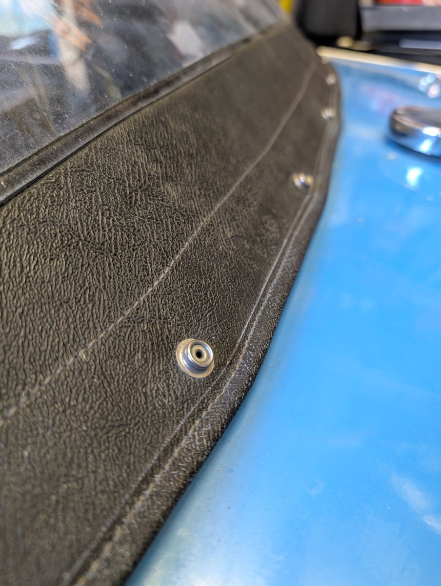 stuart Posted September 4, 2025 Report Posted September 4, 2025 18 hours ago, Dale Moore said: My 4a has these along the back of the hood, to hold the hood bag on. Not sure about a tonneau as I don't have one. Dale Having said that the same studs are along the tops of the doors and the dash. Always assumed that if I had a tonneau that would be how it was meant to be attached Thats a TR5/6 arrangement. Stuart. Quote