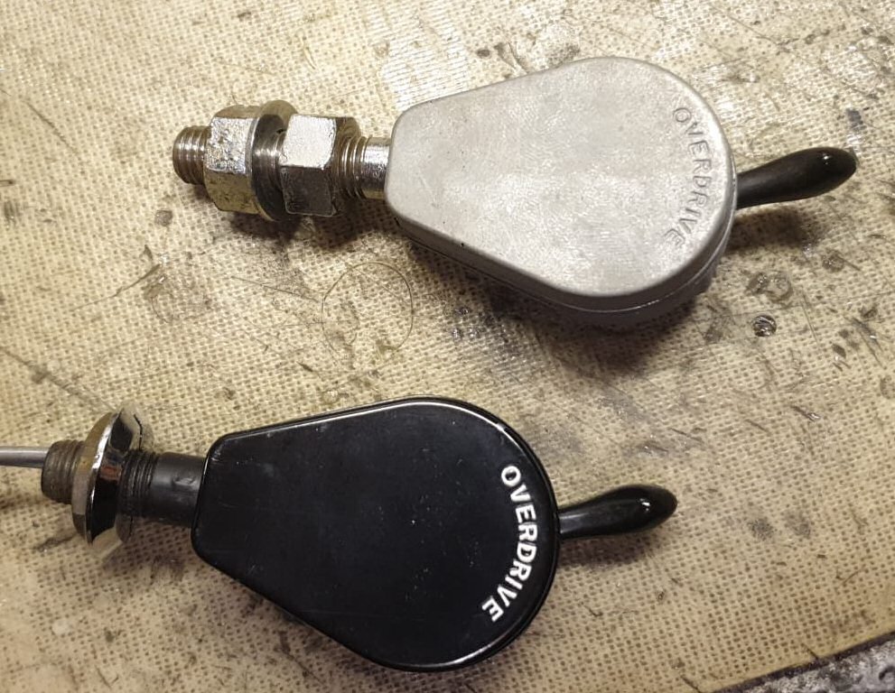 Lebro Posted November 6 Report Posted November 6 Actualy found two of them. The black one is as good as new, I would want £60 for that, the unpainted one (with non standard fixing bolt) £10 Of course if you wanted to employ my "Logic" overdrive circuit I could modify one or the other prior to shipping ? Operation is flick switch lever up for O/D in, down for O/D out, if in O/D & change gear it drops out. Bob Quote