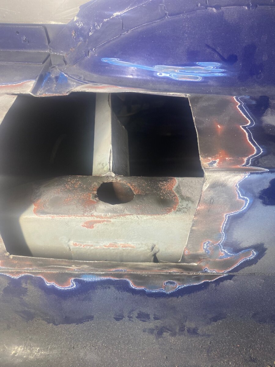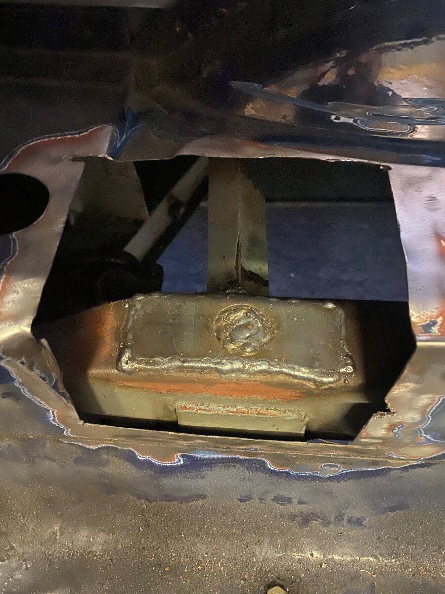 Dave McDonald Posted December 25, 2025 Report Posted December 25, 2025 I had diff hanger pin pull out completely from rear bridge left side on TR6 race car. Cut out an opening in rear floor bench/ spare wheel well under fuel tank area. Welded pin back in and plated it over top of bridge with a hole bigger diameter than pin diameter then flooded that hole with weld to plate and pin for extra security. Rather than weld patch back in floor, I pop riveted an aluminium plate back over it with silicone sealant all round, to make it easier to access should I need to be back in there again. See photos. Quote