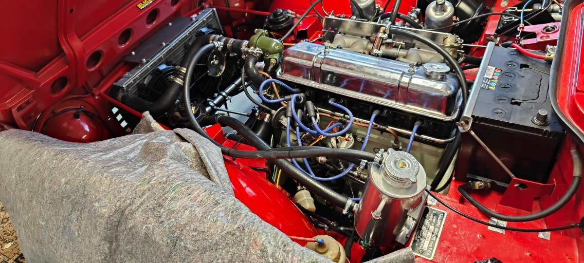 BlueTR3A-5EKT Posted February 1 Report Posted February 1 3 hours ago, Z320 said: Hi Andy, there is a mistake in the Hydra you installed. But - it’s great for me to see your design works anyway! You lucky guy, that mistake very likely safes you from a brakedown by a 2nd mistake! Who sees them? Ciao, Marco I have looked and can only make a comment on two things. Thermostat housing painted BMC green….might change the legendary reliability of a TR! Curious about the nut that holds the narrow belt aluminium water pump pulley on, without the usual very thick washer. That being a wide faced nut has probably reduced the need of the very thick washer. This full width cross flow type radiator fitment is/was common with racers. I think it was some Opel Vauxhall the radiator came from. Quote
