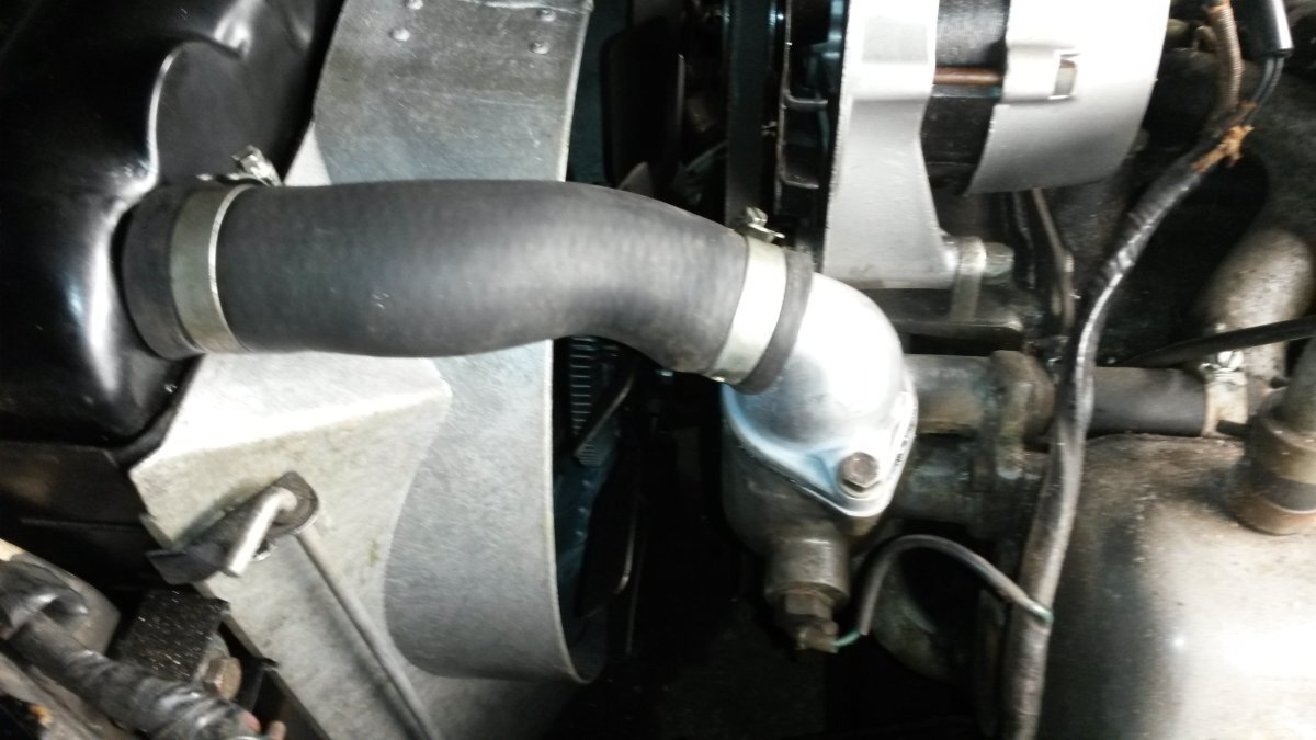 Bfg Posted Saturday at 05:13 PM Report Posted Saturday at 05:13 PM 7 hours ago, Z320 said: But trapped or not, it makes no difference with the temperatures. Thanks Marco. Interesting to read that the closed cooling system offered no significant improvement over the standard. I note your disregard for the standard water pump. Perhaps you would instead prefer to replace it with and electric water pump, as is being offered in Australia ? I've heard favourable reports, but I have some anxious about its reliability. Certainly, if I'd experienced overheating issues - then I would next have fitted a cowl around Katie's TR6 7-blade fan ...but of course I would have moulded that to include / draw air through all four corners of the radiator core ! My Daimler v8 has such a cowl (above) and I believe it improves efficiently and also helps contain fan noise. I'm thinking this would be easily adaptable for use on a TR, I still don't like the standard TR cowl around the front of the radiator, but that's as much to do with my encouraging cool / fresh air to feed the carburettors. Pete Quote