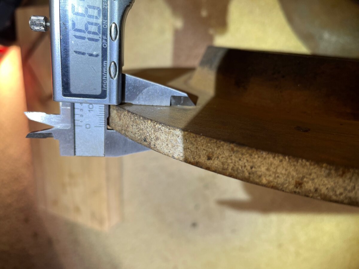 stuart Posted February 2 Report Posted February 2 1 hour ago, Ralph Whitaker said: Been looking in original workshop manual and there is no reference to the original thickness of the discs, only reference to no more than 0.060" to be removed if they are being "trued up". I am assuming that they were originally 1/2 inch (12.7mm) and your 13.07 measurement was either a build up of rust or a slight discrepancy in the measurement. So 60 thou being 1.5mm, anything over 11.2mm should be OK including the replacement discs you already have. Remember too that the TR3 was one of the first cars to have disc brakes and the discs were quite thick compared to later cars, for example the discs fitted on my Dolomite are only about 10mm thick from new in a car of similar weight with servo assistance, even the Sprint uses the same discs as my lowly 1300. FWIW I have skimmed discs fitted on my 3a. Your rear brakes do not even look bedded in yet, the pic of the offside shoe shows the only contact seems to be the last couple if inches before the adjuster. It might be worth checking the backplate as it is common for the handbrake lever to wear a notch in the back plate which prevents the cylinder sliding back and forth as it must to obtain proper braking on both shoes, though this normally means that the trailing shoe does little work and the shoe directly operated on by the piston in the cylinder does most. If the backplate is grooved then it needs welding up and grinding flat again. Ralph You can find the minimum disc thickness marked on the edge of the disc. Stuart. Quote