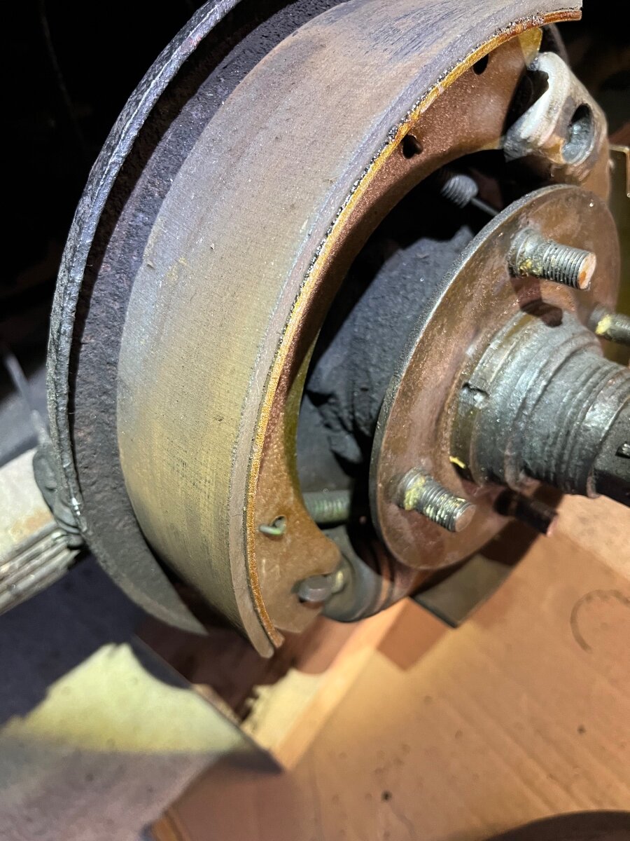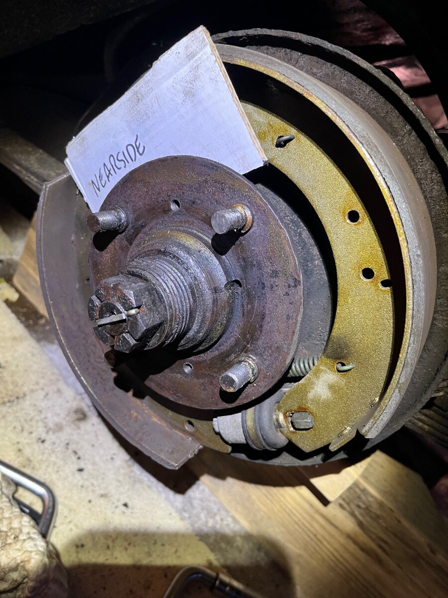PXC Posted February 1 Author Report Posted February 1 Ok I’ve now got the rear wheels and drums off. They are 10”. the drums are smooth and shiny with no pitting or grooving, and the shoes look like they’ve been replaced at some time. it’s had new slave cyls as well, they look clean and no leaks. So, only question is do the shoes need replacing? The depth of friction material is about 4.8mm on both sides. What would new ones have? i should mention that I don’t have a problem per se, this was just exploratory (never having had them off in my ownership before). Exception is that the rear offside stays stuck on after handbrake released until I start reversing out of the garage, then it unsticks itself with a loud click. However, having seen the clean inside, I’d hazard a guess that it was just a bit over adjusted. I’ve backed both adjusters off 4 quarters just to aid refitting the drums. Quote
