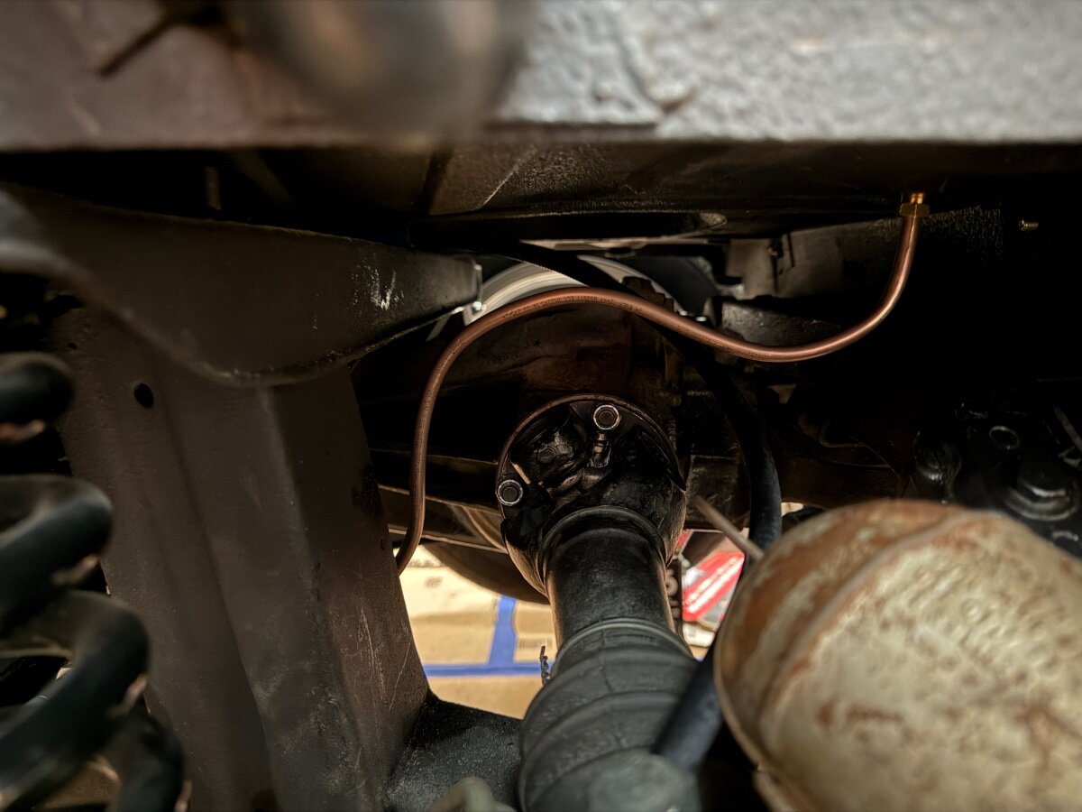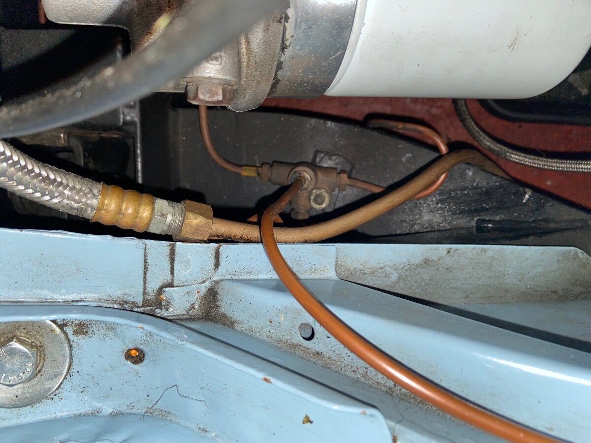 My Dads Car Posted April 7 Report Posted April 7 Hi - I’ve installed the fuel tank in my LHD 4A and am in the process of running new fuel lines ( the kit from Automec) I have a couple of questions: Here’s a photo of how I have the line exiting the tank. Does this look right to you all in terms of clearing the axel half-shaft? The line extends a bit past the box behind the transmission. This leads to my next question: how to join 2 sections of pipe? I have the 5/16 rubber connectors and clamps from the kit. How much do they need to cover the pipe to be considered safe? The one I tried as a test was a bear to push on and only went about 1”, maybe 2”. Is that enough on either end? Finally, how do I test if the fitting to the tank is fluid tight? Obviously not going to pour water in there and don’t want to use gasoline since the engine is still out of the car… Any recommendations for a fluid to test with? Thank you in advance for all suggestions! Jamie Quote