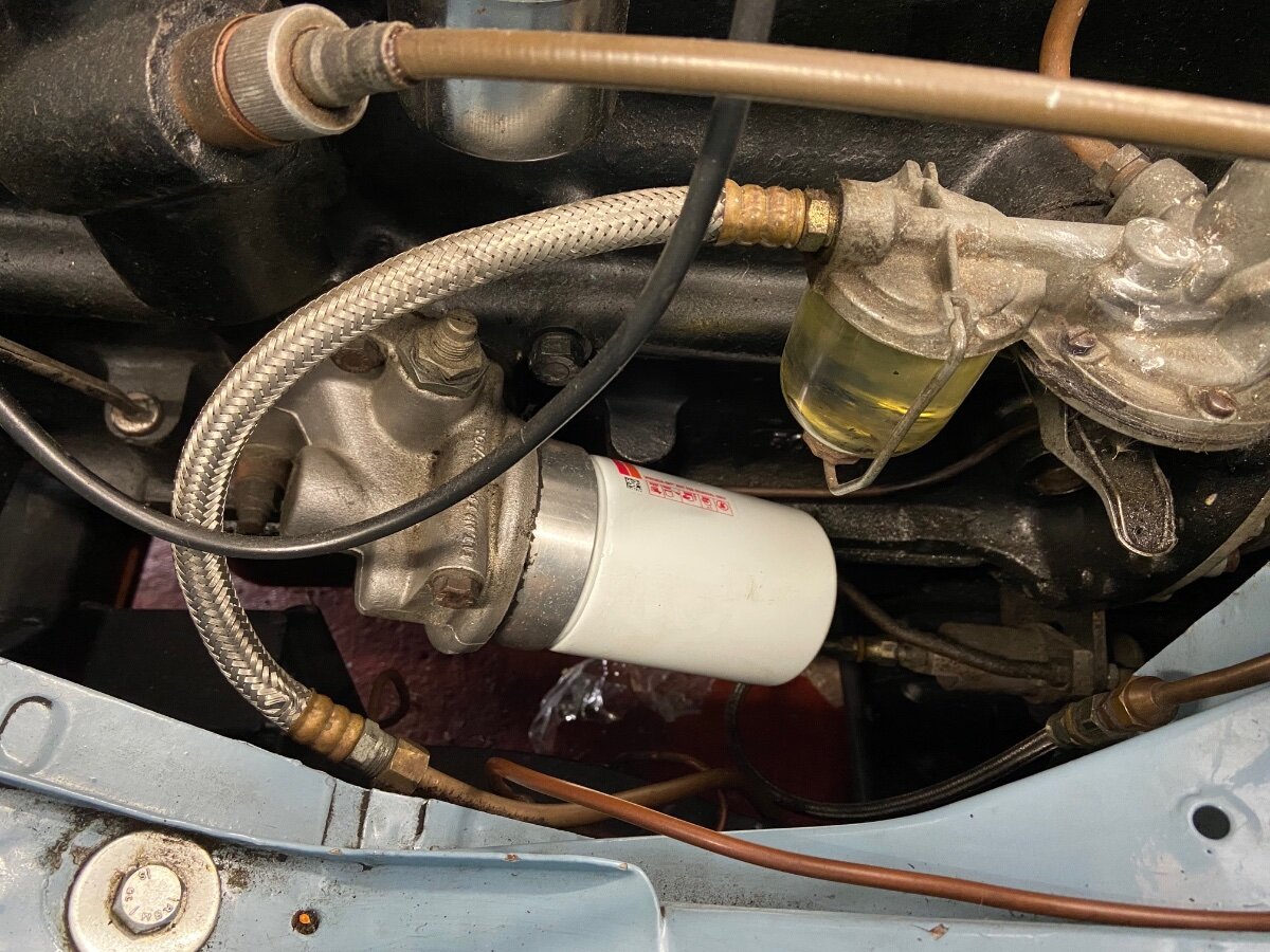 Ralph Whitaker Posted April 8 Report Posted April 8 7 hours ago, My Dads Car said: Thank you, Roger, and all those who replied! The Automec kit came with R9 hose so it seems that is acceptable, at least minimally. I thought the outlet looked a bit on an angle as well; I've taken it off and re-attached twice and came up with the same result. The olive nut is seating fine and the pipe is solid at he joint. I think it's ok but will go cautiously about putting fuel in the tank. The kit also came with the hose clips Stuart linked to. I attached the the hose to the first length of pipe and then the second, leading all the way to the fuel pump. Which brings up another question: can the long piece of pipe provided be bent into a "C" shape to connect directly into the fuel pump? I know on the original there was another hose junction between two pipes just below the pump with the "C" being a separate piece of tubing. Can someone tell me how wide the "C" pipe is from top to bottom? There is a separate pipe in the kit to make this connection but I also have sufficient pipe on the long run to make that curve. Using the pipe that's in there saves me a, potential, leaky joint in the future. Thanks, Jamie I wouldn`t connect direct to the pump with the copper pipe, the rubber connector is necessary to allow for the movement of the engine and to leave it out would risk fracturing the pipe. Some older cars are connected direct, my 1948 Hillman for example, but allowance for engine movement is achieved by forming the pipe into a spiral wound spring shape with several turns. Also I would use at least 4 inches of flexible rubber pipe between the ends of the solid pipe to allow for flexing, butting up the ends of the solid pipe inside a rubber tube would be no good at all. Ralph Quote