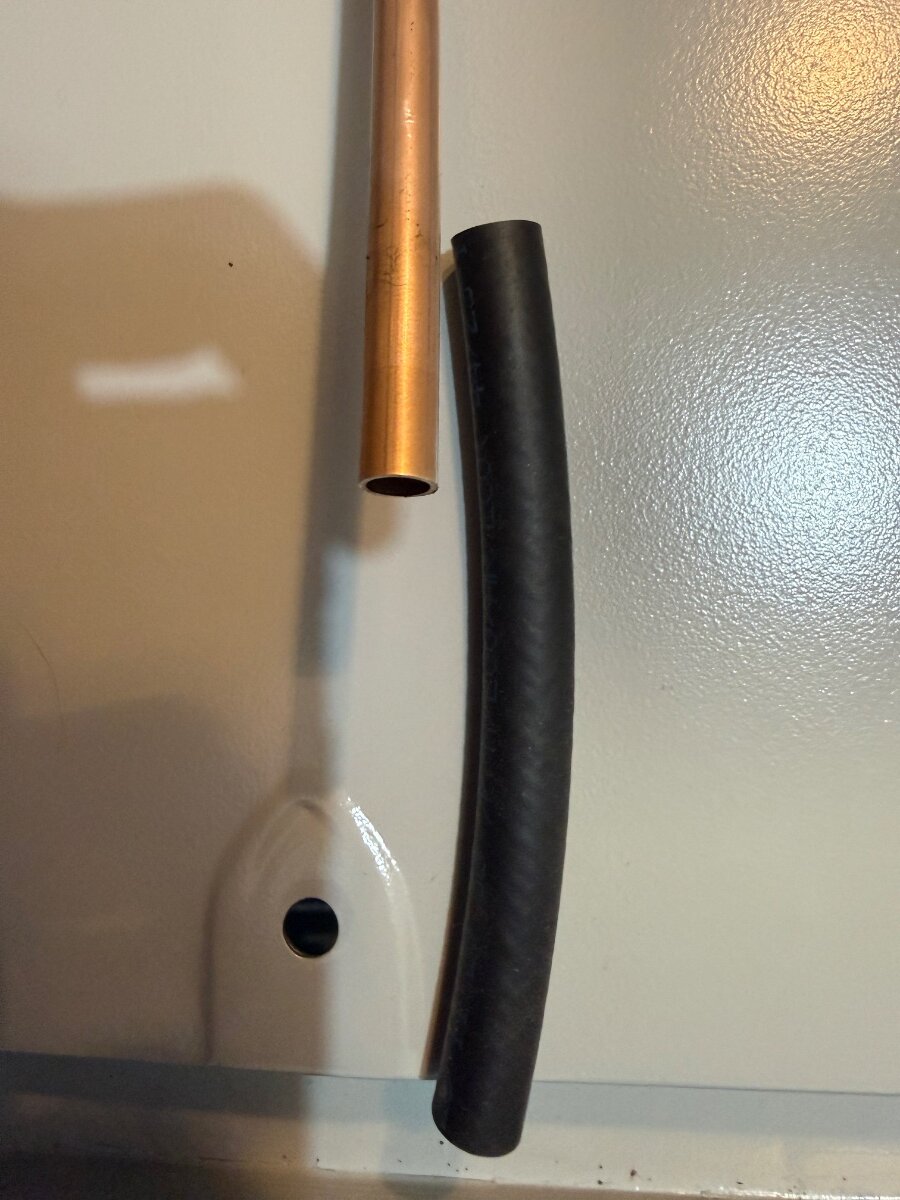 Ralph Whitaker Posted April 7 Report Posted April 7 Hi Jamie, looks OK to me, well clear of axle. There is no great pressure on the fuel line other than gravity so 1 to 2 inches of rubber pipe pushed over the copper should be fine. Could always double up on the pipe clips if you wanted to be sure. Is it an olive fitting on the fuel tank end?, if so they usually make a good seal but check by only putting a gallon in the tank at first, it may weep but will just need an extra nip up and should stop. Ralph. Quote